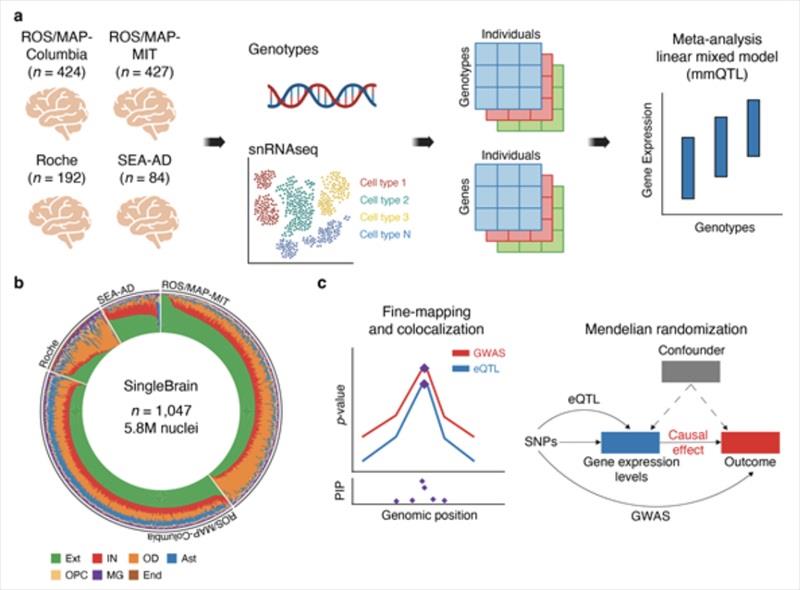 연구팀은 이러한 난제를 해결하기 위해 1,047개 샘플에 달하는 대규모 뇌 조직 단일세포 데이터와 유전체 정보를 결합한 분석 프레임워크를 구축했다.