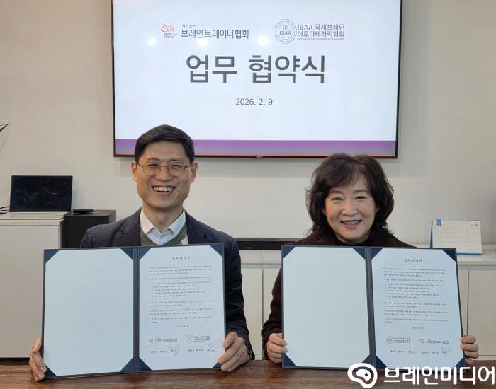 브레인트레이너협회(회장 전세일)는 국제브레인아로마테라피협회(회장 한리아)와 두뇌훈련 및 브레인 기반 아로마테라피 관련 교육·학술·산업 발전을 위한 상호 협력 체계 구축을 목적으로 업무협약(MOU)을 9일 체결했다.