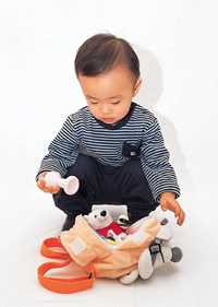 준비물: 멜 수 있는 작은 가방, 아이의 놀이감이나 물건들, 슈퍼마켓 놀이기계나 버튼소리가 나는 전화기